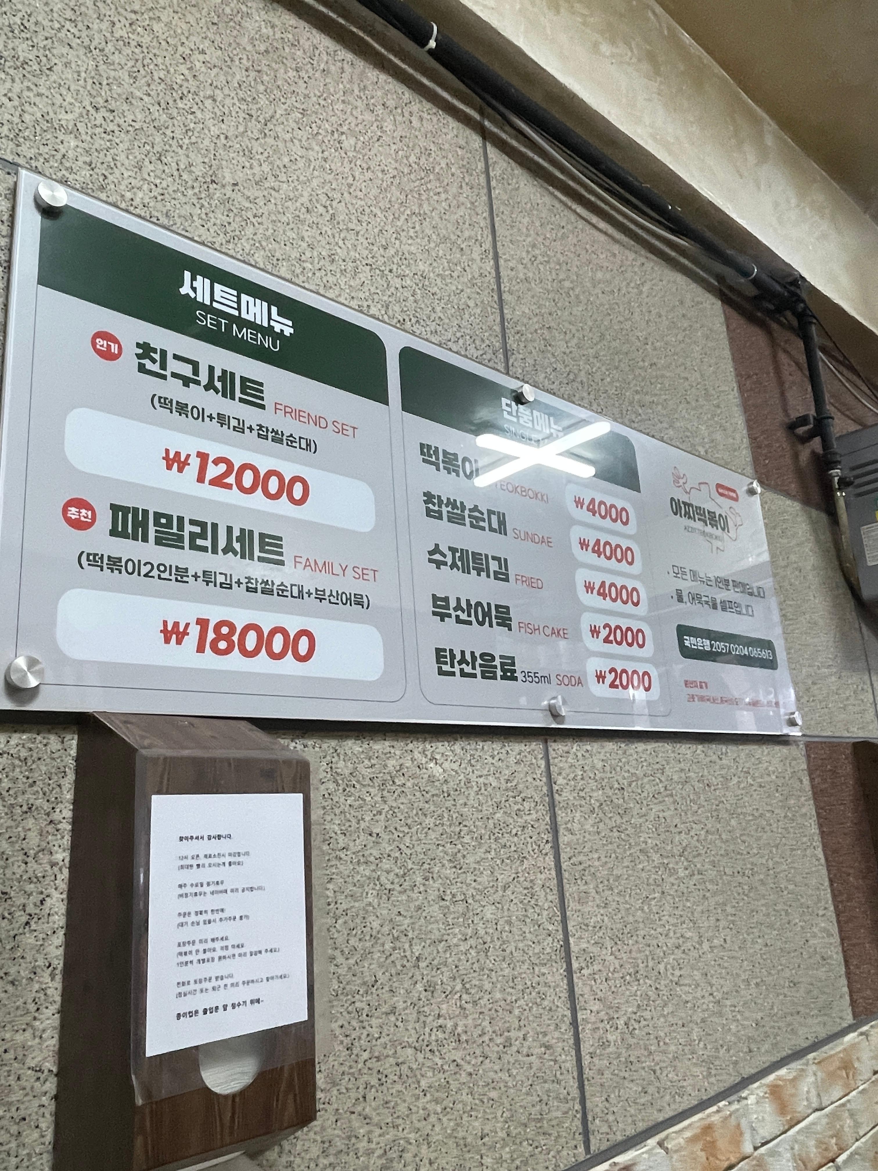 메뉴판을 보고 놀랐다. 이렇게 단순할 수가. 떡볶이, 순대, 튀김, 어묵. 그게 전부다. 세트 메뉴는 친구세트(12,000원)와 패밀리세트(18,000원) 두 가지. 단품은 모두 4,000원이다.
